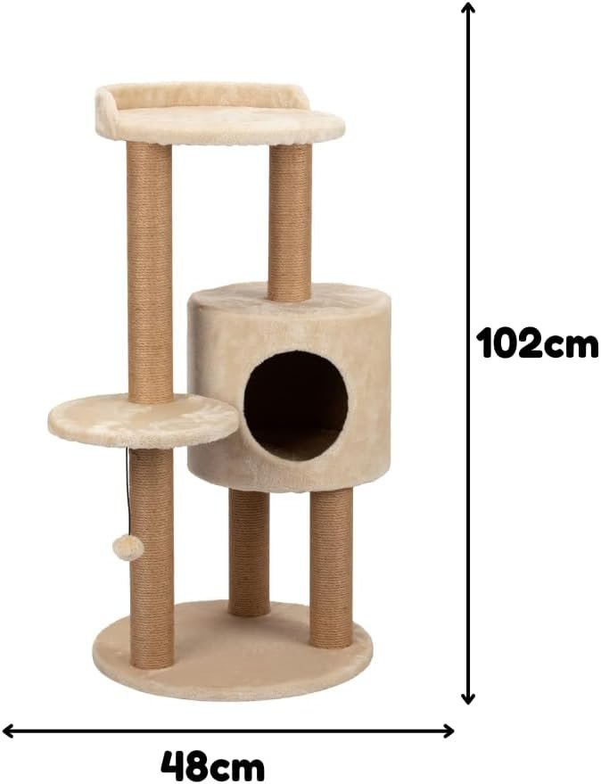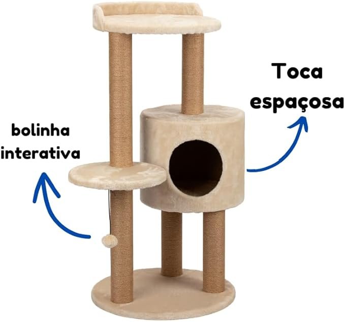 Construído com materiais de alta qualidade, como sisal resistente e pelúcia macia, garantindo durabilidade e conforto. Esta torre não só satisfaz os instintos naturais do seu gato, mas também adiciona um toque de sofisticação à decoração da sua casa, sendo um item essencial para o bem-estar do seu felino.