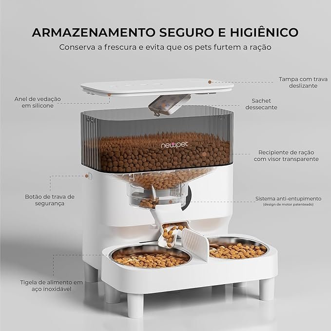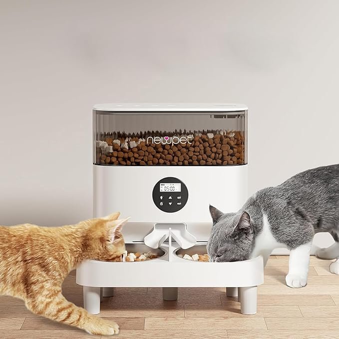 - Design com tigela dupla: famílias com vários animais de estimação podem se beneficiar do design com tigela dupla, permitindo que dois animais comam ao mesmo tempo; ótimo para gatos e cães pequenos.