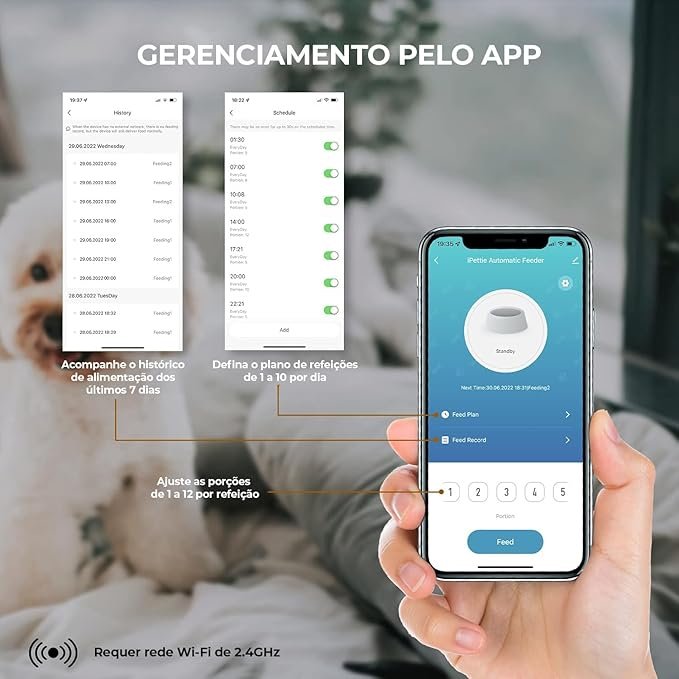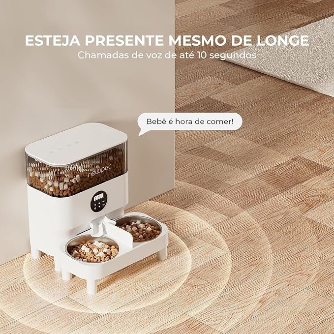 - Fique conectado ao seu animal de estimação com o recurso de áudio do alimentador automático, que permite gravar até 10 segundos e interagir com seu animal de estimação remotamente.